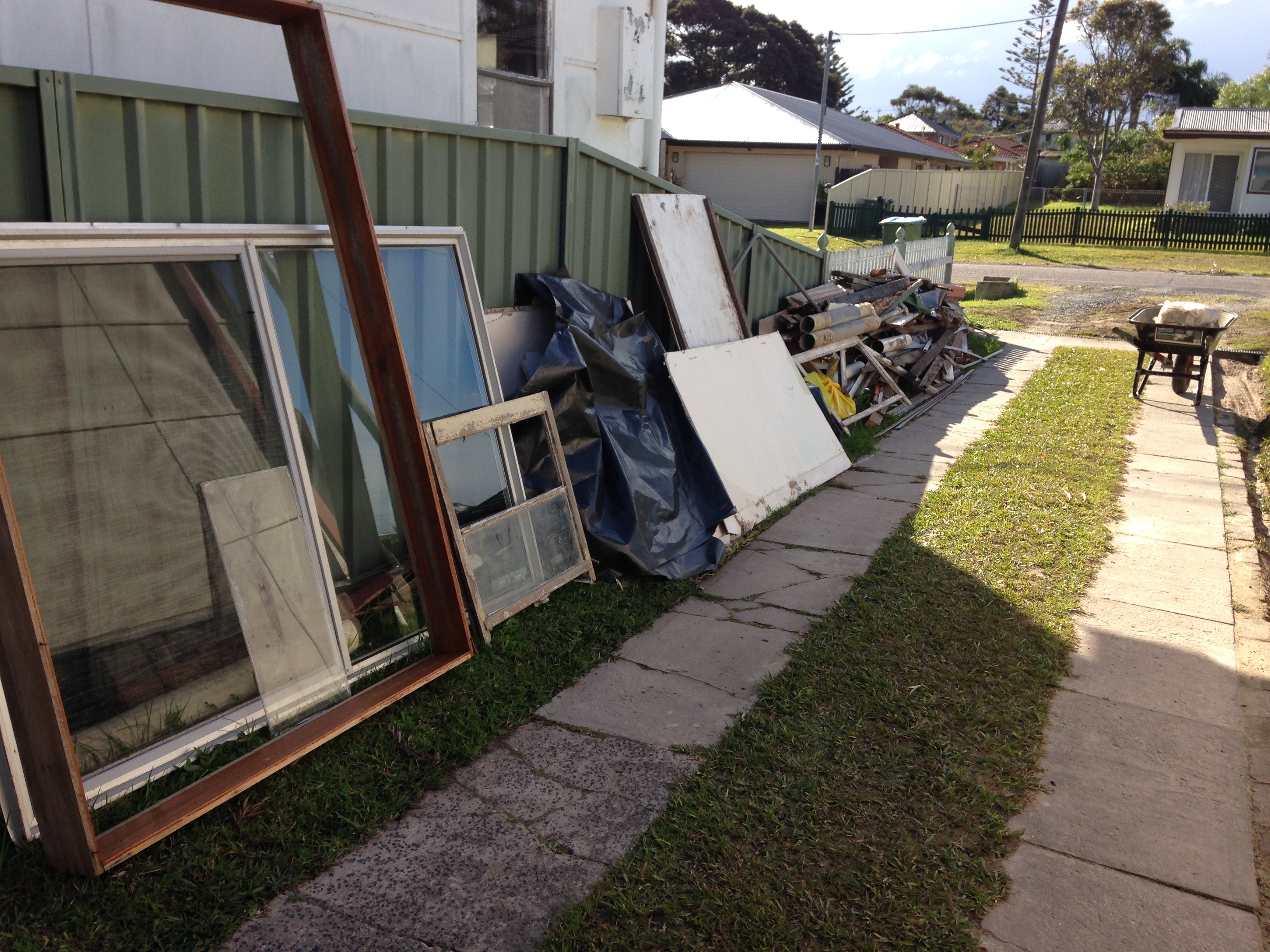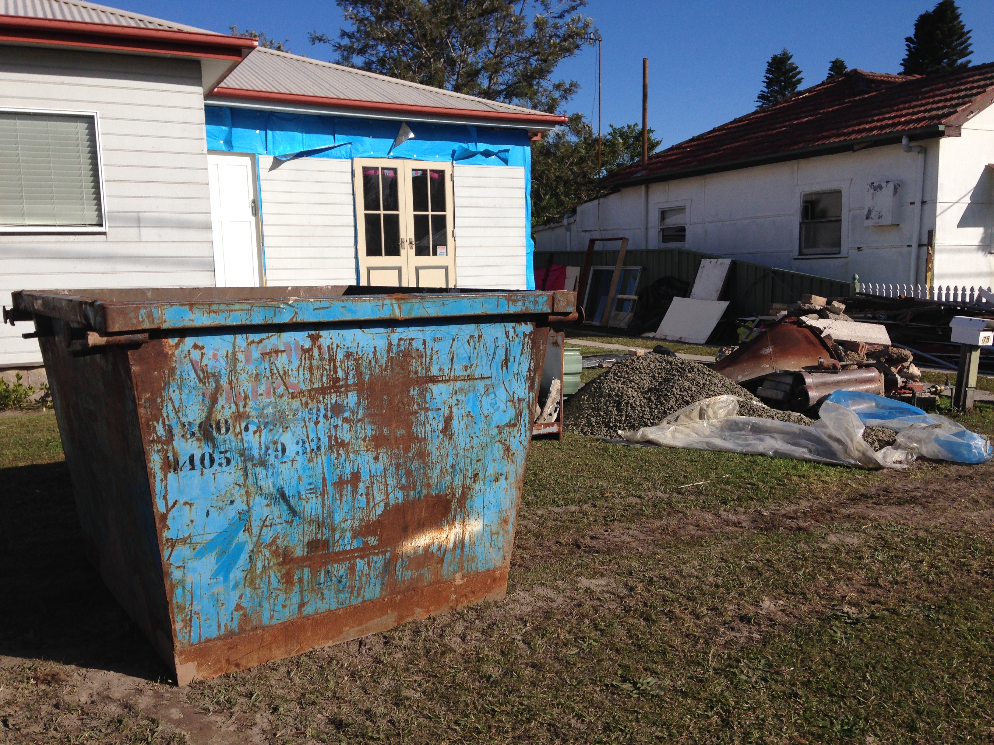 My HSH has been in Sydney doing a renovation over the last 3 weeks so I have been here on my own doing what I can to keep moving forward. My home looks like a rubbish tip. I don’t mind living in a mess. I guess if I did I wouldn’t be able to stay focused and positive. Even so, I can only stand so much. The piles of rubbish out the front have to go. So I ordered a skip bin. I also crawled under the house, in a space of only about 500mm high and dragged out most of the rubbish. There is still a bit to go but it is so much cleaner. The bin arrived while I was at work and when I returned I realised I had underestimated the size I needed.