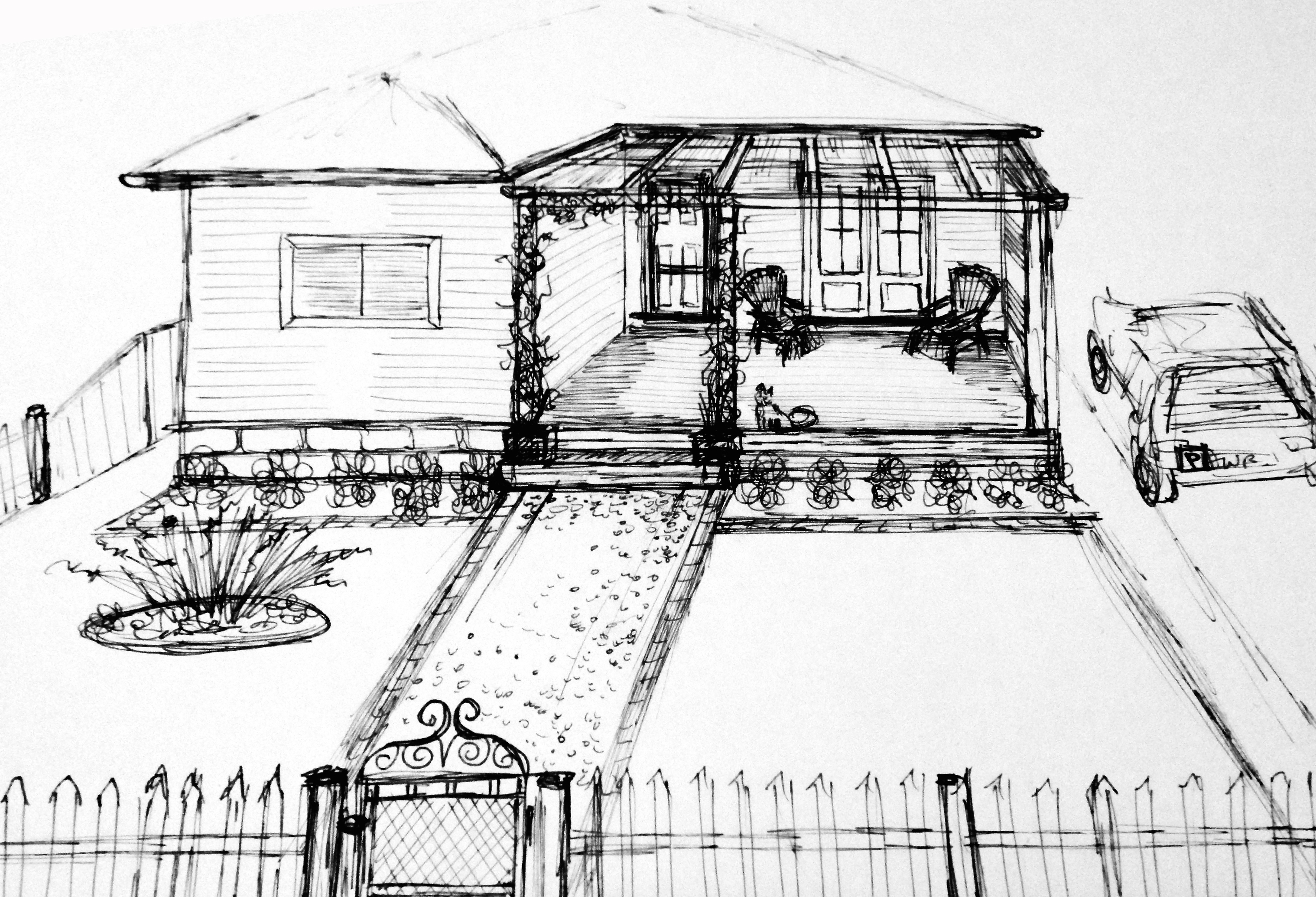 I am on a mission to get at least one room completely finished and the front of the house looking great. Everything is in my head, My plans and ideas. Rather than try to describe what I want to the HSH I started to doodle and came up with this sketch – my vision.