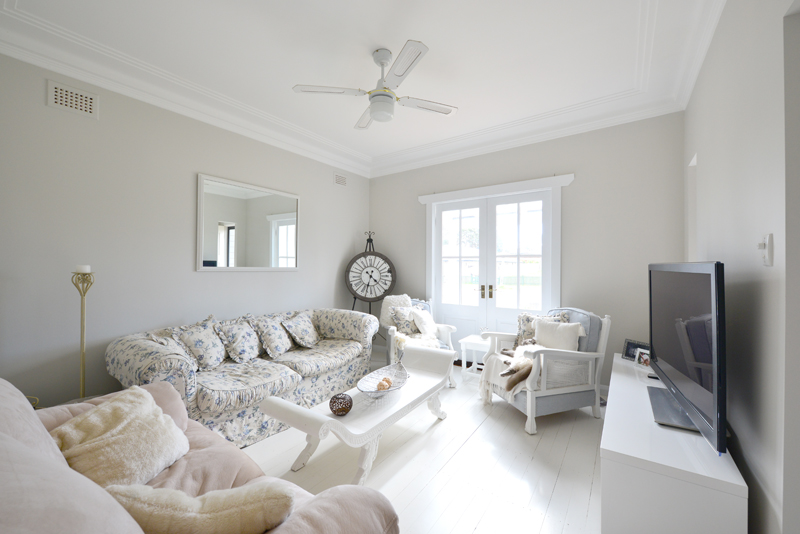 White painted timber floorboards