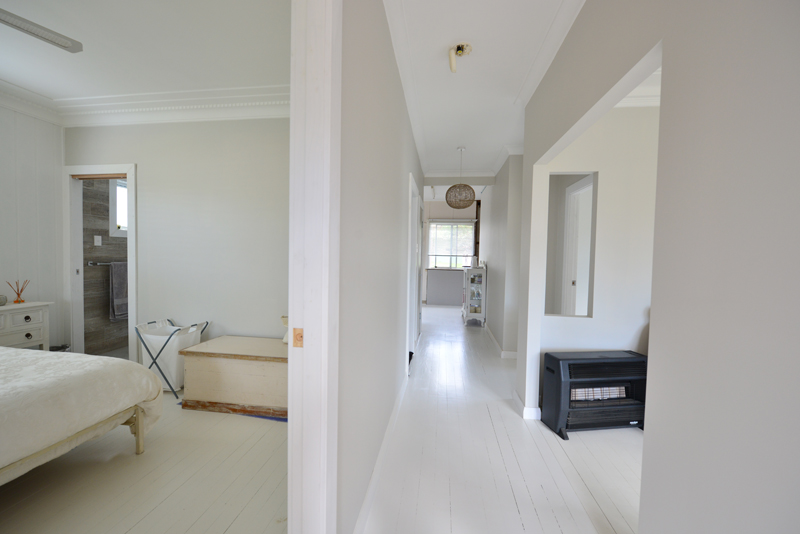 White painted timber floorboards